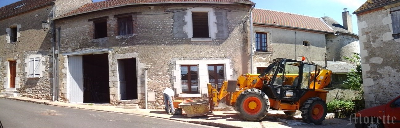 l'engin amène du béton pour la dalle